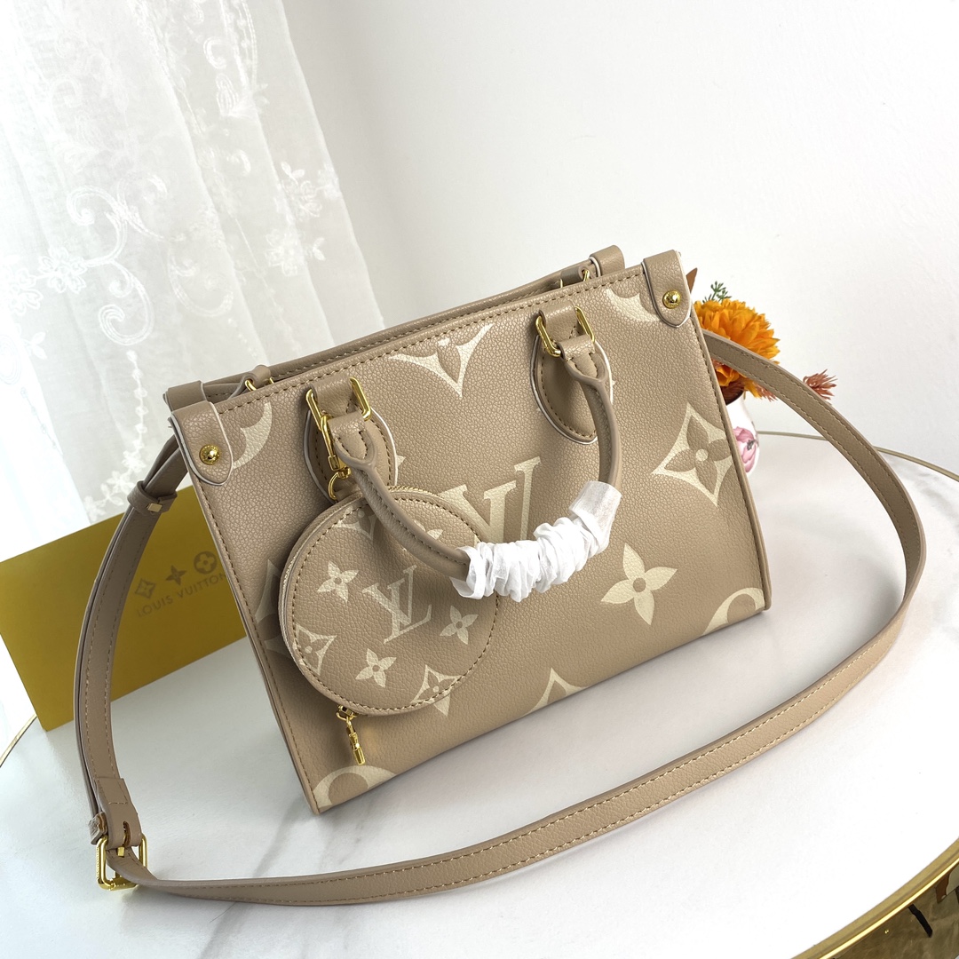 With small bag, p200, M46833, M24079, M24533, M46629, M22976, M59856 This OnTheGo small handbag is a new gradient pastel color rendering of Monogram canvas, which brightens the spring look with a fresh attitude. The streamlined space can accommodate a tablet, wallet and mobile phone, and the detachable round coin purse, detachable jacquard shoulder strap and Toron handle can achieve a variety of styling options. Monogram coated canvas-sari print lining-metal parts-detachable round coin purse-large zipper inner patch pocket-detachable and adjustable shoulder strap Size: 25x19x11.5Cm, M45659, M45653, M44570, M46653